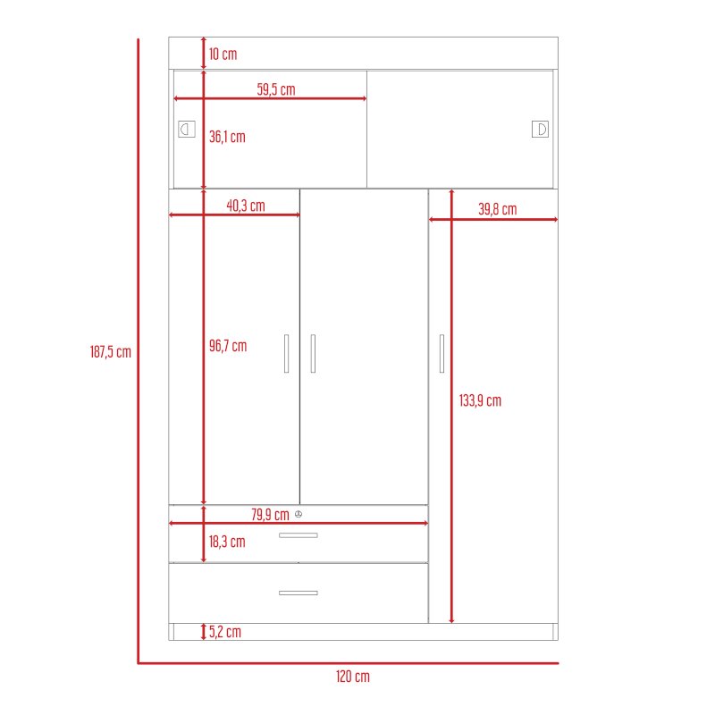 ROPERO "Z-120" 3 PUERTAS +2 GAVETAS + MALETERO GRIS OSCURO #ALW3365 #RTA