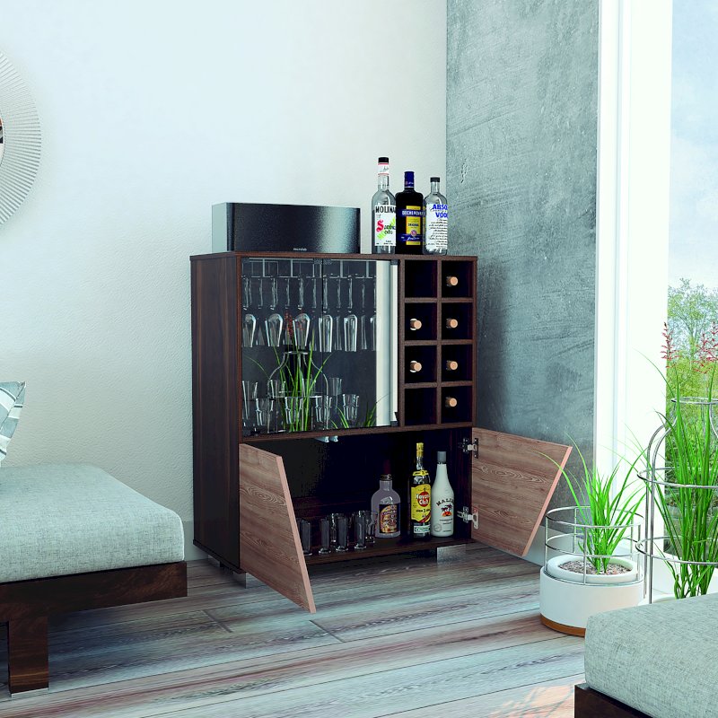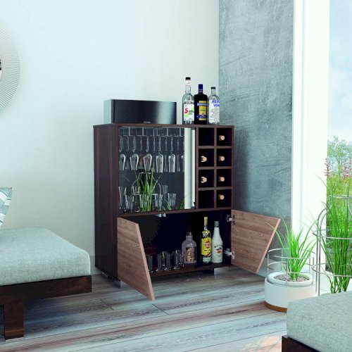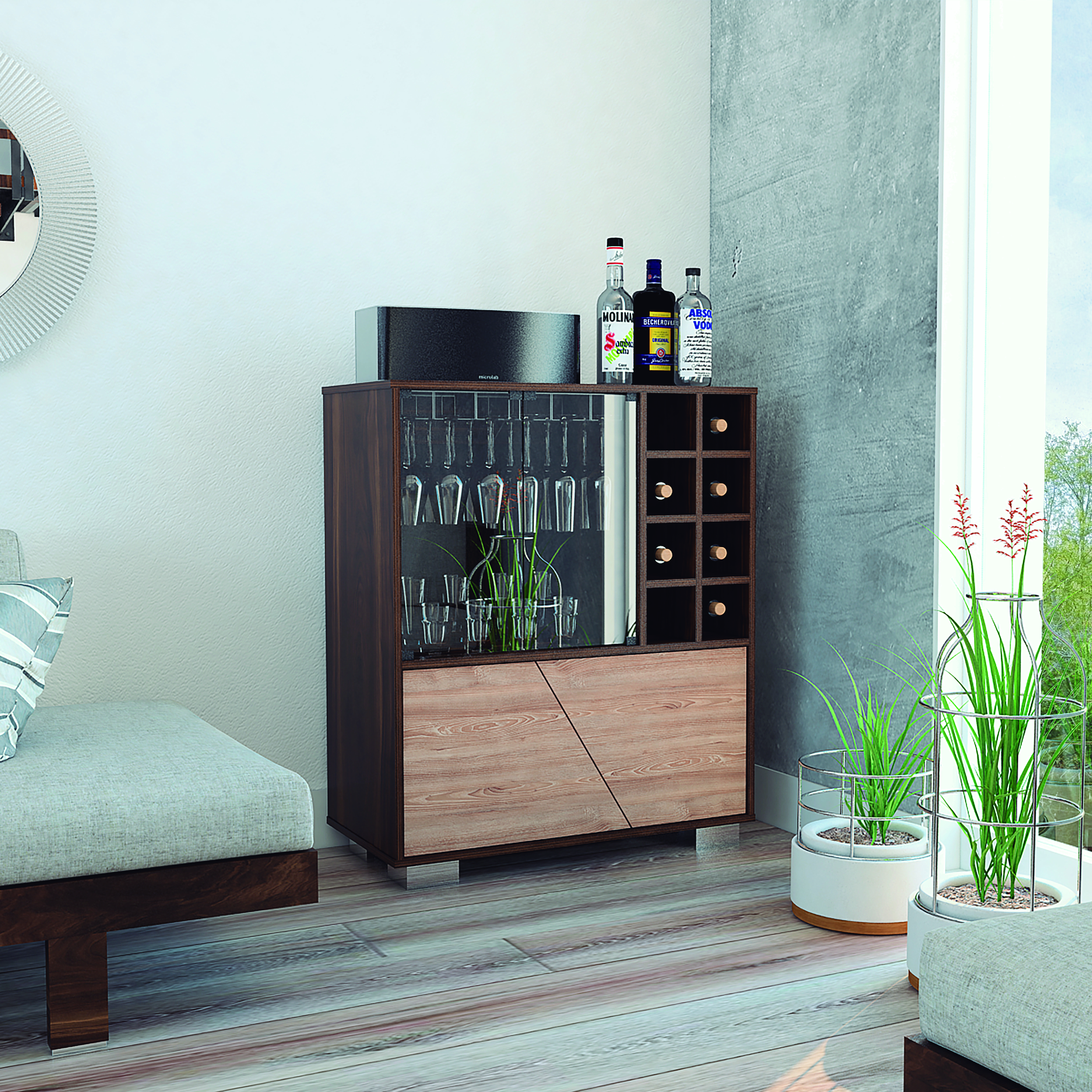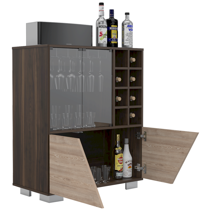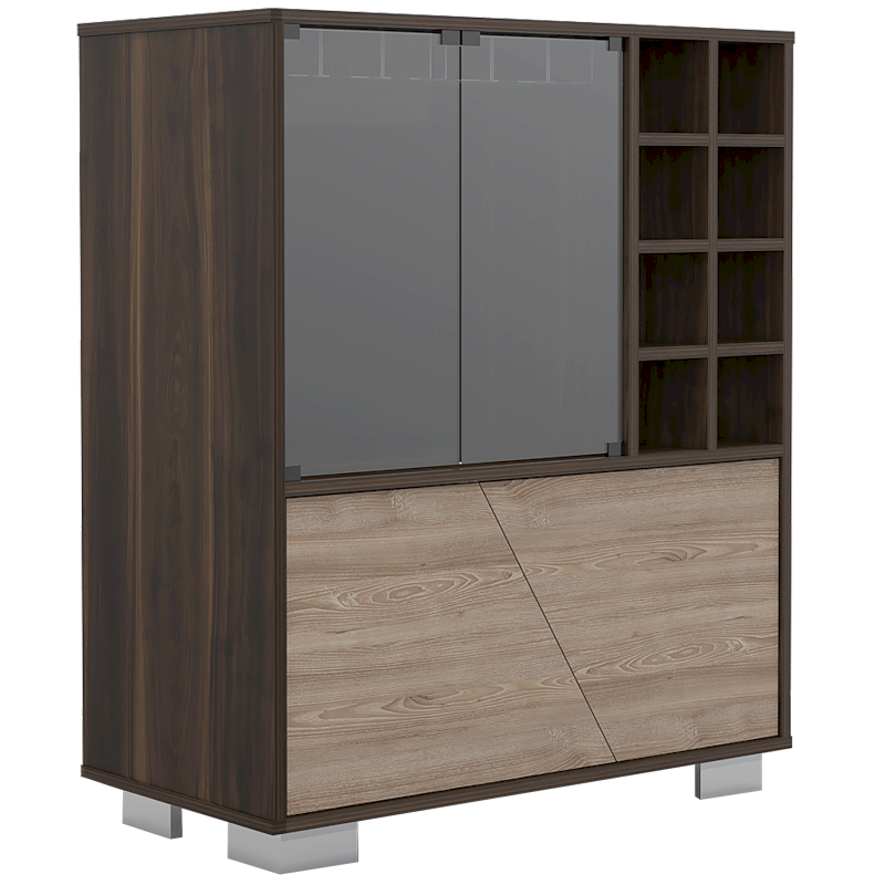 MUEBLE BAR "FRAKTAL" 2 PUERTAS DE VIDRIO+ 2 PUERTAS PUSH+8 COMPARTIMIENTOS CAFÉ OSCURO #BMH3506 #RTA