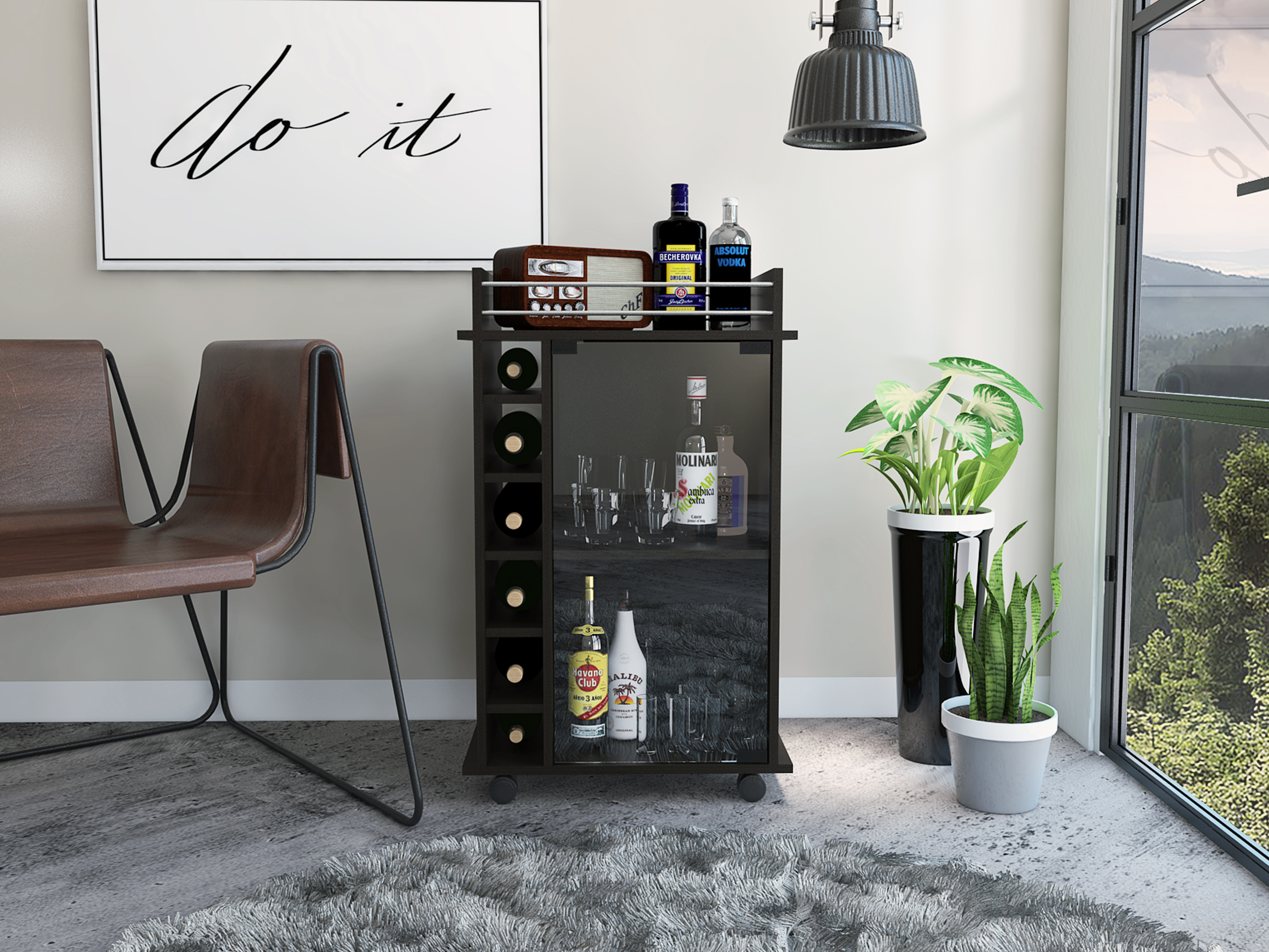 MUEBLE BAR "DUKATI" 1 PUERTA DE VIDRIO+7 COMPARTIMIENTOS GRIS OSCURO #MLW2126 #RTA