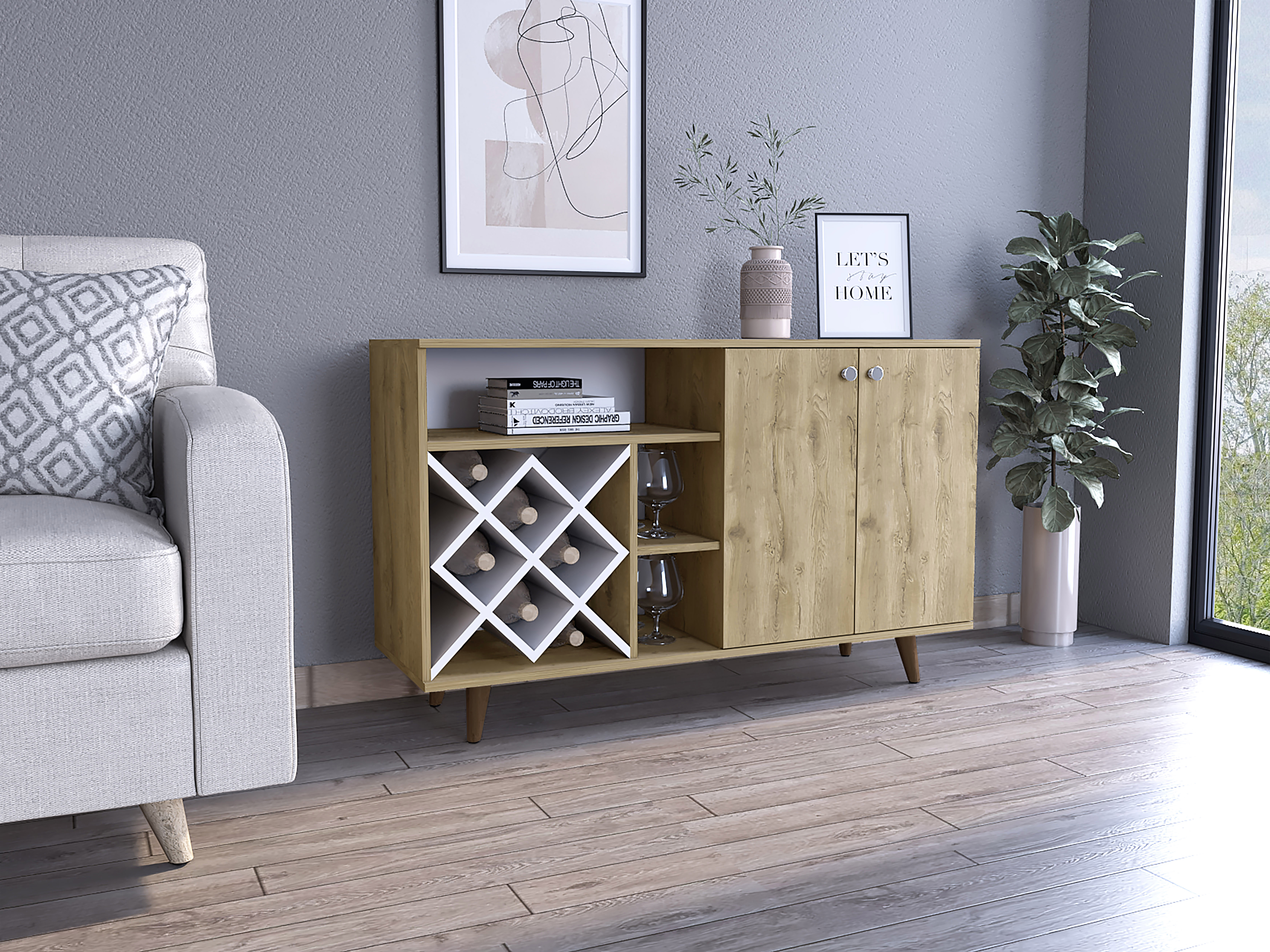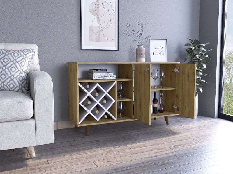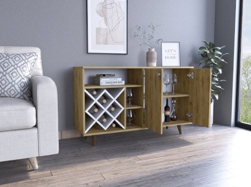 MUEBLE BAR "VIHTI" 2 PUERTAS +15 COMPARTIMIENTOS CAFÉ CLARO/BLANCO #MMB7735 #RTA