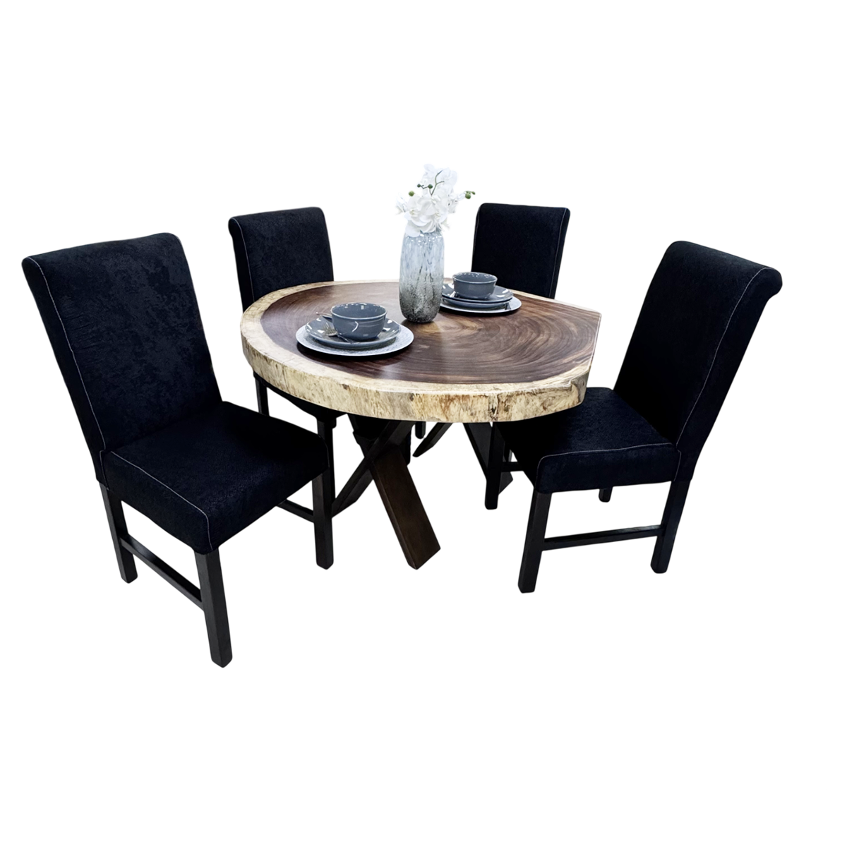 Agregar a Favoritos Producto AgregadoJGO DE COMEDOR "SLAB" REDONDO TABLON MADERA 4 SILLAS #INTERIORISA