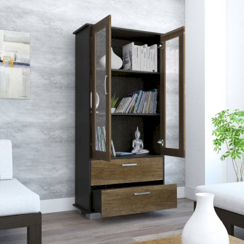 ALACENA MODERNA "CLASSIC" 2 PUERTAS + 2 GAVETAS GRIS OSCURO/CAFÉ #VWC3364 #RTA