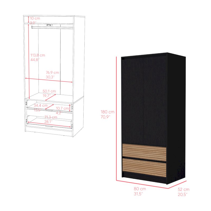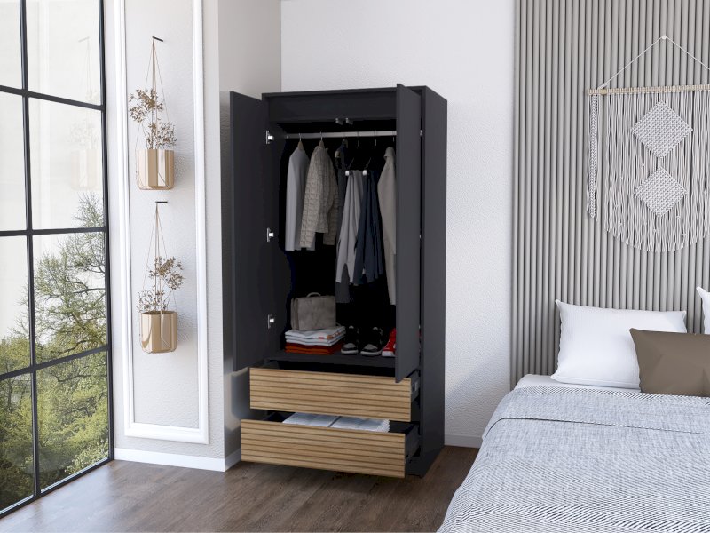 ROPERO "AUSTIN" 2 PUERTAS + 2 GAVETA GRIS OSCURO #CWL9653 #RTA
