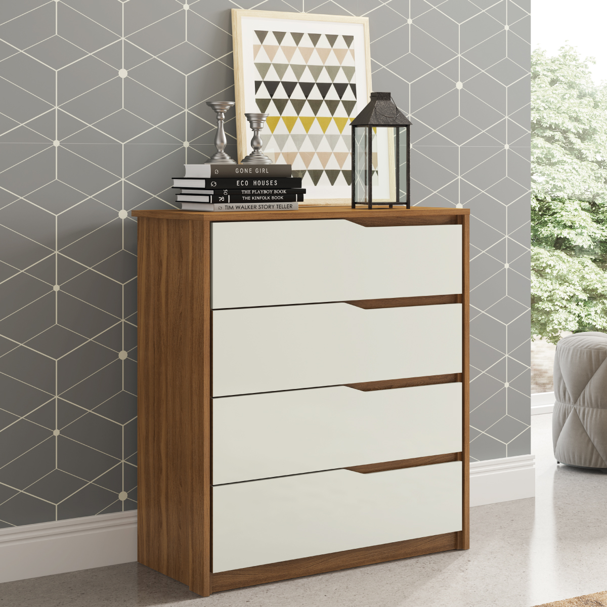 COMODA "ATRIA" 4 GAVETAS NOGAL/ BLANCO #D4010 #140 #DEMOBILE