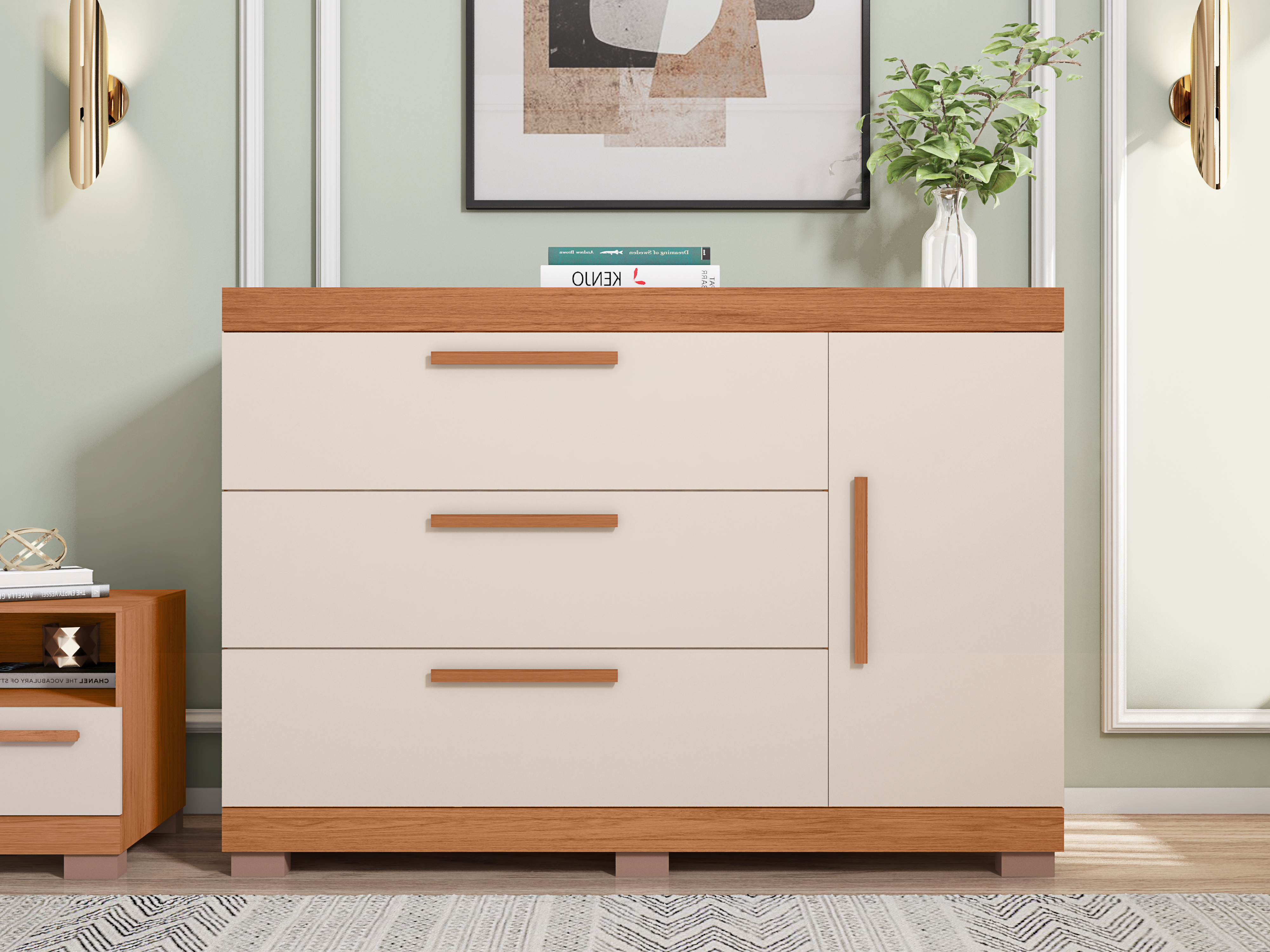 Agregar a Favoritos Producto AgregadoCOMODA "EDEN 1.36" 1 PUERTA + 3 GAVETAS BLANCO-CAFÉ #8001200015-473 #8001200015-302 #CAEMMUN