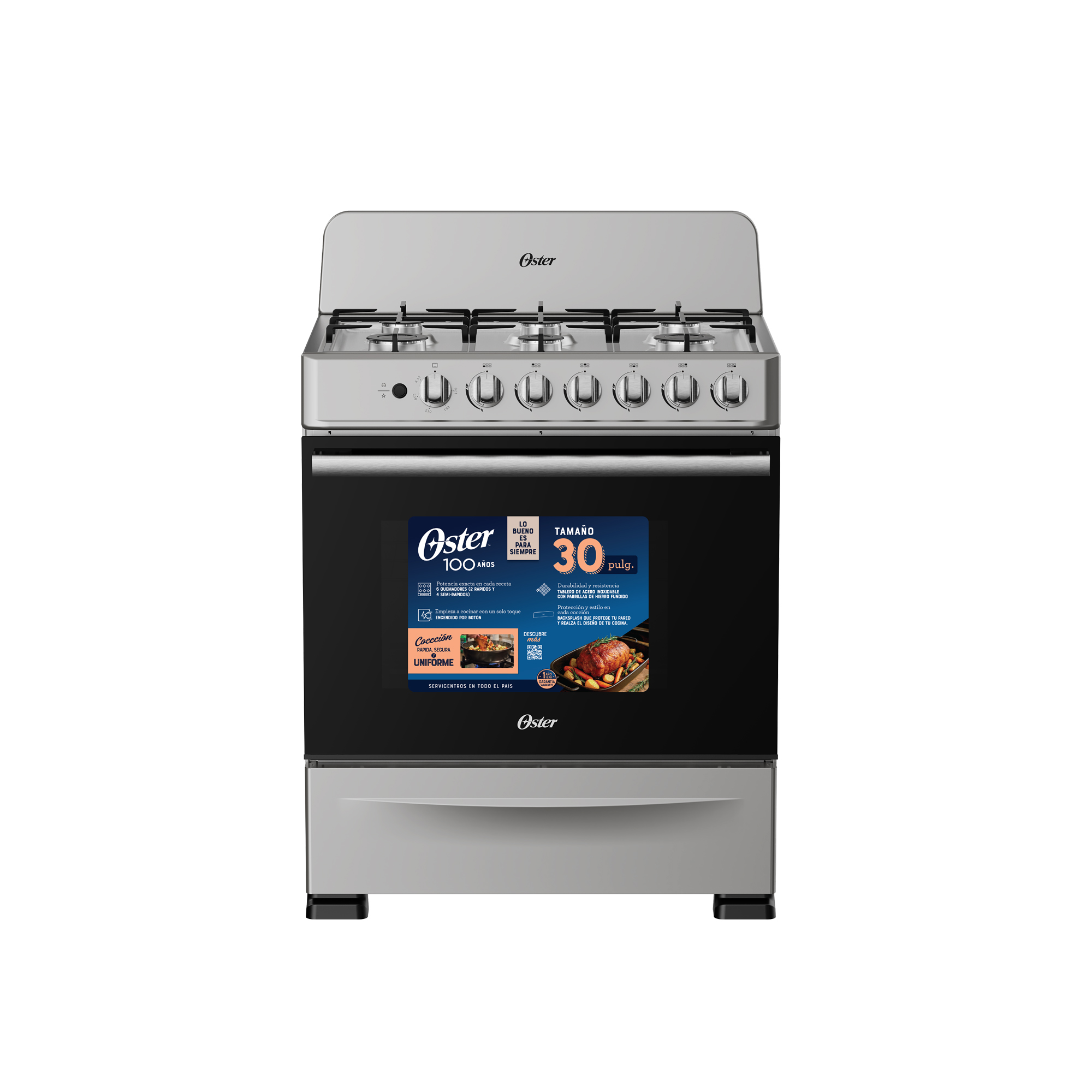 Agregar a Favoritos Producto AgregadoESTUFA D/GAS 30" (A+) "OSTER" 6 QUEMADORES GRIS #OS-GSBM30061S