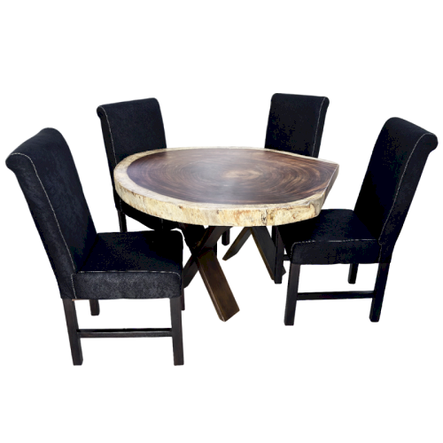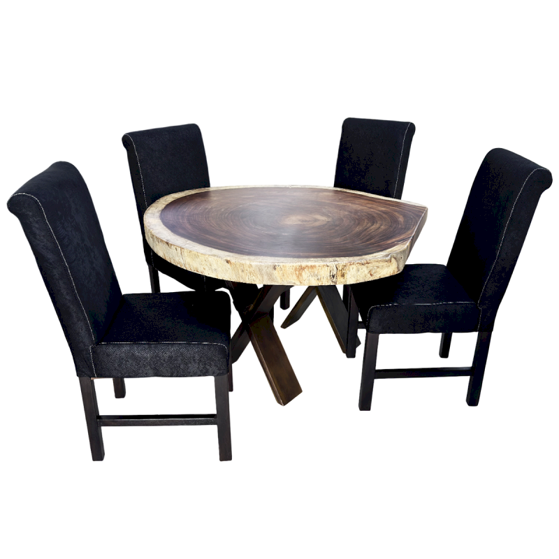 JGO DE COMEDOR "SLAB" REDONDO TABLON MADERA 4 SILLAS #INTERIORISA